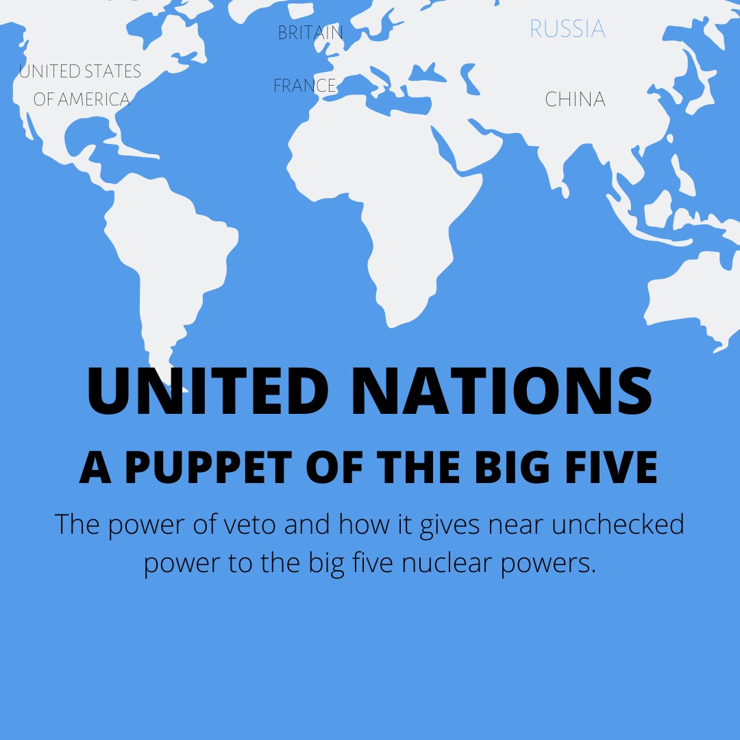 Arguably the most important wing of the United Nations is the Security Council. As it stands, the “United” Nations and its Security Council have five permanent members- the US, France, Britain, China, and Russia. Given the power of “Veto,” the big-five nuclear powers have near unchecked power and can make or break any world decisions as per their political, economic, and military benefits. There have been severe criticisms about how the permanent-members structure should be discontinued when all five are nuclear world giants, with no country representing the other part of the socio-military world. As per 2019 records, USSR and Russia vetoed 141 times, the United States 83 times, UK 32 times, France 18 times, and China 14 times.