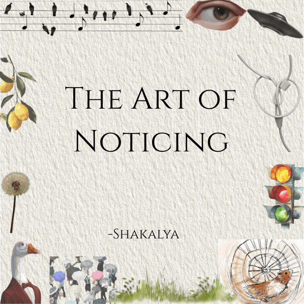 We are no different than a hamster on a wheel. Our life ‘revolves’ around checklists; chasing one goal after the other in the blink of an eye. In this process, we are so fixated on the final holy grail that we turn a blind eye to the process itself. Alexander Fleming didn’t just ‘look’ at his ruined, moldy petri dish; he noticed the bacteria weren’t growing near the mold. For once if we float away from the noise and actually try to notice instead of merely looking, we find that life is full of easter eggs: small easy to miss poetries indeed, hidden in plain sight, waiting eagerly to amuse us.