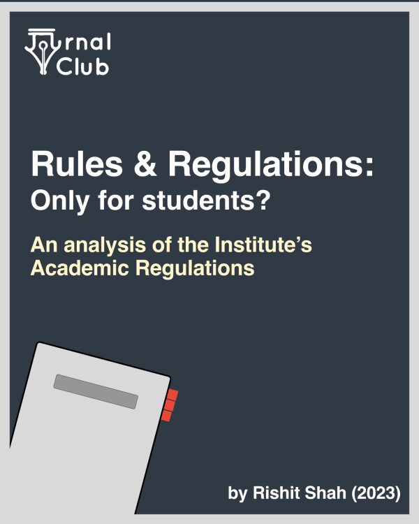 An analysis of the Institute's Academic Regulationsby Rishit Shah (2023) As students, we follow the rules and guidelines of the university and campus, for both academic and residential purposes. A lot of these are basic rules, to maintain the harmony on campus, and are not under study in this article. Here, the aim is to... Continue Reading →